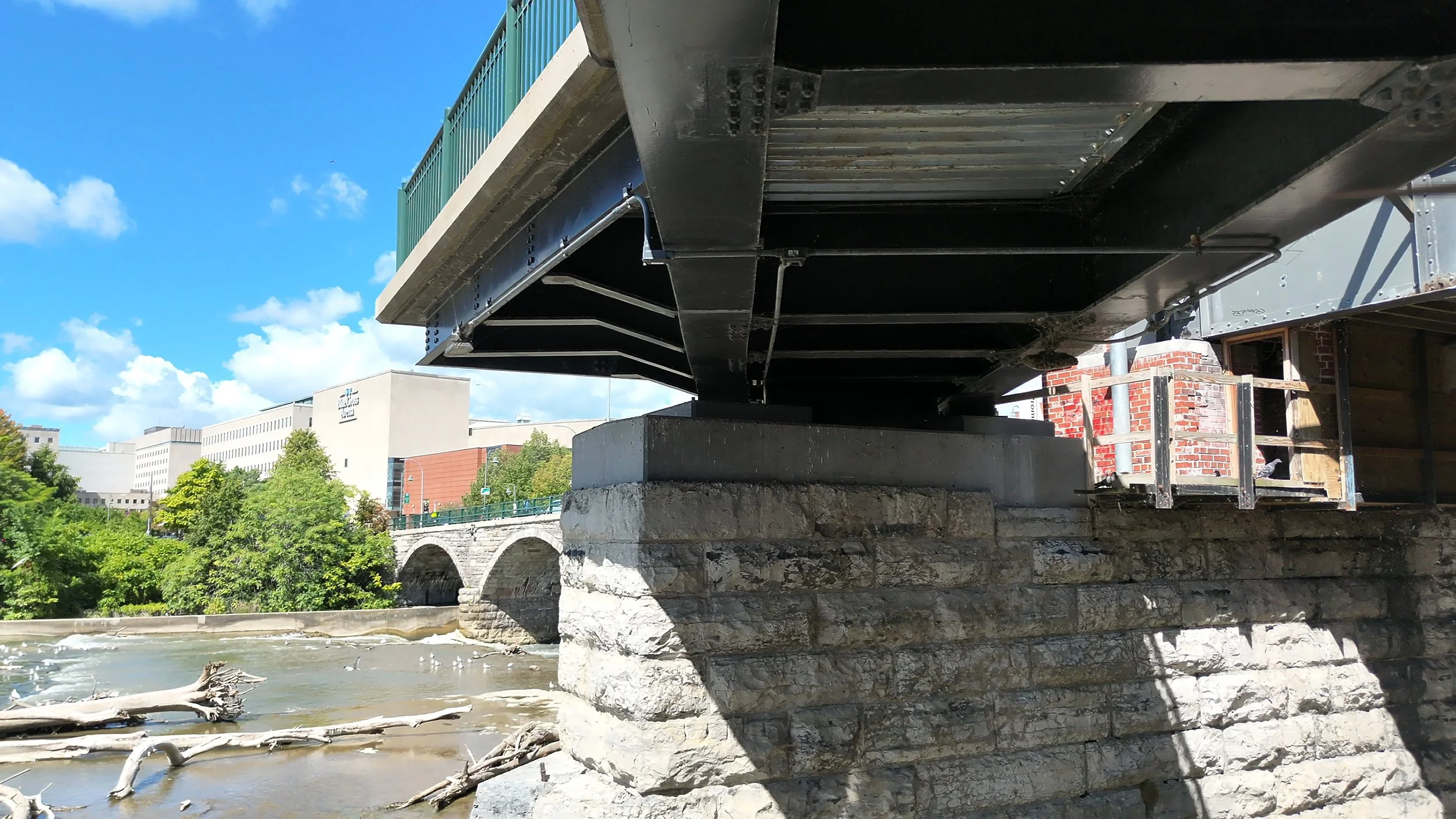 Lu Engineers engaged our team to support routine inspections of two pedestrian bridges located in a dense urban environment in Rochester, New York. Both bridges span waterways, presenting significant access challenges for traditional inspection methods. One bridge was completely inaccessible by boat, and both sites posed safety, terrain, and cost concerns that made conventional approaches impractical.